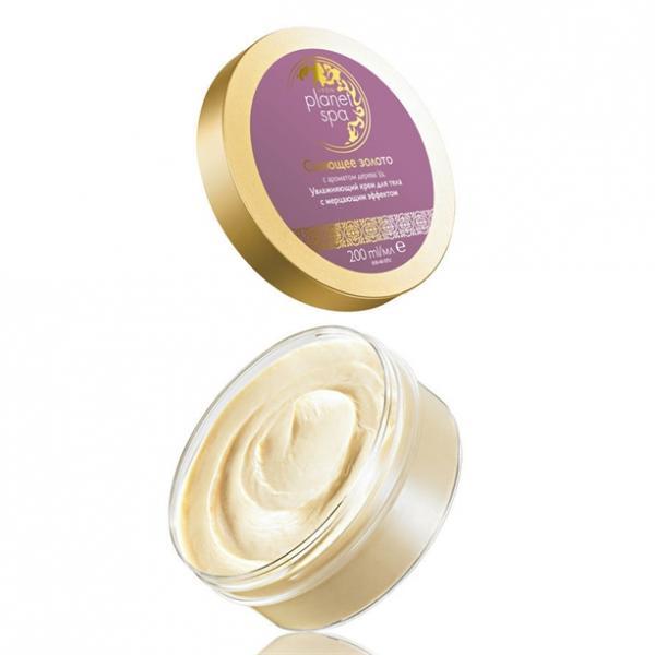 Увлажняющий крем для тела с эффектом мерцания и ароматом дерева уд «Сияющее золото», 200 мл